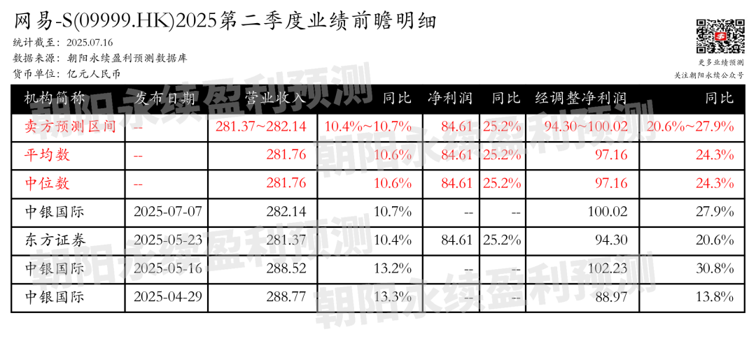 中银国际认为:(基于原文翻译)2025年第二季度(2Q25)业绩展望总收入:预计同比增长11%至282亿元(人民币,下同),略低于市场共识1%。